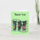 Ce Carte de remerciements a trois chats noirs musicaux habillés de vêtements lumineux jouant d'un violon, d'une guitare et d'un saxophone avec des rangées de notes de musique derrière eux sur un arrière - plan vert clair. Customisez le texte de remerciement sur le devant avec le modèle.