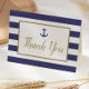 Carte De Remerciements Nautical Navy Bleu Rayures Ancre Or Script