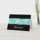 Carte de voeux Merci floral noir blanc et turquoise. Carte de voeux Merci classique, romantique et sophistiquée avec une bordure florale blanche et tirquoise le long de la carte et des traits pointillés.