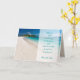 Carte de remerciements avec écritures pour un enseignant de l'école du dimanche. Un océan bleu tropical et du sable de plage chaud sont à l'avant des cartes horizontales pliées. Un panneau blanc transparent tient cette écriture de Proverbes : "Entraînez un enfant dans la façon dont il devrait aller et quand il sera vieux, il ne se détournera pas de lui." Une autre image de plage de sable recouvre l'intérieur où un modèle texte peut être utilisé pour inclure un message de remerciement personnel avec une signature. Cette carte est disponible en trois tailles et dispose d'une option de téléchargement instantané.