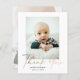 Budget Minimum Script Photo Bébé Carte de remerciements. Le dos comprend un message de la famille et une 2ème photo. Cliquez sur le bouton Modifier pour customiser cette conception avec vos photos et détails.