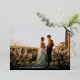 Les cartes de remerciement de mariage élégantes sont dotées d'une seule photo mariage horizontale ou orientée paysage, avec "Merci" superposé dans un script de calligraphie de feuille d'or chic. Personnalisez avec vos noms et date mariage le long du bas en lettres de bloc classiques. Ajoutez un message personnel et une signature à l'arrière.