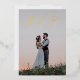 Carte de remerciements de mariage minimaliste et élégant avec texte de script de typographie. Le texte dit "merci" au-dessus de votre photo verticale. Vous pouvez ajouter une photo à l'avant et à l'arrière avec votre message.
