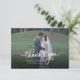 Élégant Carte de remerciements Photo Lettré À La Main Mariage. Une façon géniale et réfléchie de remercier vos amis, votre famille et vos collègues qui vous ont honoré leur présence lors de votre mariage avec cette photo moderne, merci de noter des cartes avec un script écrit "merci" et un coeur d'amour.