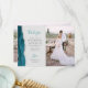 Send your family and friends a special wedding thank you with these custom photo cards. The right-hand side features a vertical photo. On the left, the words "thank you" appear in elegant teal handwriting script typography on a pale gray background over a brief, editable message of thanks to your wedding guests in charcoal gray copperplate font, with your names below. A teal blue watercolor agate border trimmed with faux silver glitter decorates the left edge. The reverse side provides space for a second, horizontal photo.