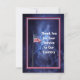 Carte de remerciements pour le service militaire au service de notre pays. La carte est une simple avec l'impression à l'avant et à l'arrière. Il est bleu foncé avec un drapeau américain. Les mots à l'arrière peuvent être changés.