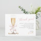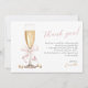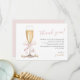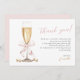 Carte de remerciement de réception de mariage minimal or Perles roses & Prosecco avec un nœud rose