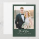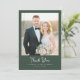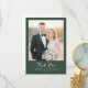 This elegant wedding thank you card features a sophisticated photo design with a soft, romantic color palette of muted greens and warm tones. The layout is simple yet refined, focusing on the central photo area that invites personalization with your special moment. The typography is classic and understated, complementing the overall timeless aesthetic. Perfect for expressing gratitude after a beautiful ceremony, this card captures a serene and heartfelt mood, making it an ideal keepsake for cherished memories.