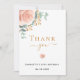 Un carte de remerciements d'anniversaire moderne et élégant de 50ème (ou tout âge). Un arrière - plan blanc chic. Décoré d'or rose et de roses roses rousses, fleurs florales et feuilles d'eucalyptus vert couleur eau, sprigs, végétation et sprigs faux or. Lettres noires et dorées. Sur le devant le texte : Merci, nom, et une date. Retour : Personnalisez et ajoutez votre note de remerciement et votre nom.