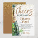 Un magnifique 50ème anniversaire "encourage à 50 ans" carte de remerciements de fête. Cette carte fabuleuse comporte une bouteille de mousseux sur un arrière - plan de confettis en or. Facile à personnaliser avec votre propre message de remerciement pour la fête du 50e anniversaire.