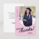 Une carte de remerciement de diplômé comportant une photo verticale avec un bord arqué. Personnalisez cette carte rose clair et noire avec votre propre message de gratitude ou utilisez celui qui est présenté.