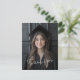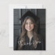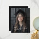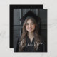 Carte de remerciements de graduation avec votre photo avec le texte "merci" dans une police de script moderne, et message personnalisé sur un arrière - plan de couleur noir ou personnalisé.