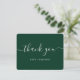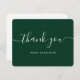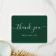 Carte de remerciements vert foncé simple, mais élégant, avec une police de script moderne. Personnalisez facilement cette carte pour votre mariage, douche nuptiale, anniversaire ou autre occasion.