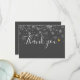 Avec une élégante typographie de remerciement en écriture blanche, des flocons de neige hivernaux et un cœur doré chic sur un fond gris foncé. Vous pouvez personnaliser avec votre propre message de remerciement au verso ou si vous préférez ajouter votre propre message manuscrit, supprimez le texte. Un moyen parfait de dire merci ! Conçu par Thisisnotme©