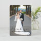 Style vertical. Cartes simples de Merci de mariage de photo de recouvrement de manuscrit d'écriture. Concevez par Elke que Clarke© pour MonogramGallery a imprimée par Zazzle. Envoyez votre mariage vous remercient message comme l'épouse nouvellement à vos amis et la famille utilisant ceci admirablement, carte de remerciements simple avec les mots "vous remercient" écrits dans un recouvrement noir des textes de manuscrit de typographie d'écriture. Remplacez la photo témoin par vos propres. Ajoutez votre personnel vous remercient message sur le dos ou laissent le blanc et la main écrivent votre message en personne. Autre colore disponible.