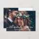 Cet élégant carte de remerciements de mariage est moderne et minimaliste, mais a également une atmosphère vintage charmante. Un script de calligraphie blanc chic orne l'avant, avec votre photo de mariage préférée, et une photo supplémentaire se trouve à l'arrière avec votre propre message personnel à vos invités.