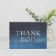 Carte de remerciements à plat moderne et masculin avec un design simple avec "Merci" en grandes lettres blanches en gras sur un lavabo bleu marine foncé. Le côté arrière contient votre message personnel ainsi que votre signature, votre titre et votre nom commercial. Ce design est idéal pour tout professionnel d'affaires.