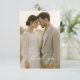 Celebrate your love with this simple modern wedding thank-you card featuring your favorite photo and elegant handwritten script overlay.