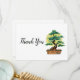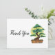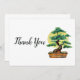 aquarelle traditionnelle d'un petit bonsaï japonais avec un soleil d'or brillant derrière lui disant merci sur une carte.