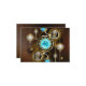 Turquoise lenses with antique watch with brass gears and golden keys on rusty, brown background. Steampunk style.