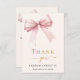 Une carte de remerciements Sweet 16 moderne et élégante. Arrière - plan de couleur crème douce, décoré d'un grand arc rose. Lettres noires et dorées. Sur le devant le texte : Merci, nom, et une date. Retour : Modèle pour Votre mot de remerciement et nom.