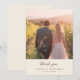 This is a romantic style image featuring a couple walking hand in hand through a vineyard during sunset. The warm golden hues of the setting sun bathe the scene, creating an enchanting and serene atmosphere. The bride's elegant gown and groom's classic suit add to the timeless charm. Perfect for expressing gratitude after a beautiful wedding day, this card captures the essence of love and celebration.