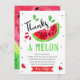 Célébrez le premier anniversaire de votre petit avec celui-ci dans un carte de remerciements d'anniversaire de melon. Le design présente un fruit de pastèque à moitié mangé en aquarelle avec le texte "Merci un melon".