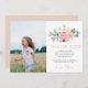 Adorable style boho, les cartes de remerciement pour la fête du troisième anniversaire de votre petit garçon sauvage présentent une illustration de tipi rose, flanquée de fleurs pastel et de feuilles. Personnalisez avec votre message de remerciement préimprimé personnalisé, et ajoutez une photo préférée de la fille d'anniversaire sur le côté gauche. Cartes inversées à rose vif.