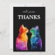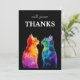 Send your heartfelt gratitude in vibrant style with this elegant thank you card from the Purrfectly Yours: A Rainbow Love collection. The front features two beautifully painted rainbow watercolor cats lovingly facing each other against a deep black backdrop, a symbol of unity, diversity, and lasting affection. The hand-lettered phrase “With Sincere Thanks” sits gracefully above, setting the tone for a meaningful message of appreciation.