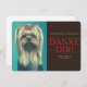 Les raisons et les occasions de remercier les personnes aimées sont nombreuses : le cadeau, les voeux de bonheur et de convalescence, le soutien et la main tendue. Même pour certaines occasions, comme la fête de la mère et de la paternité. Mais parfois, les mots ne suffisent pas. Il est temps d'avoir une carte de remerciement. Avec une carte de remerciement, le remerciement est plus sincère et plus sincère et reste en mémoire. Surtout si la carte de remerciement est munie d'un joli motif, comme le Yorkshire Terrier. Remerciez un homme bien et réjouissez-le avec la carte de remerciement avec un mobile terrier du Yorkshire.