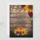 Carte de Remise à Date de Mariage Rustique Citrouille d'Automne. Annoncez vos fiançailles avec style avec notre Carte d'Annonce de Mariage Rustique. Caractéristiques un fond en bois marron avec verdure éparpillée partout, ainsi que des tournesols jaunes, des citrouilles et des roses burgundy.