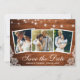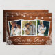 Carte d'Annonce de Fiançailles Rustique en Bois avec Guirlande et 3 Photos
