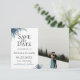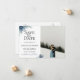 Fleurs et feuilles de chardon bleu chic et tendance, carte de Remise à Plus Tard de mariage avec photo. Conçue pour correspondre à notre collection Chardon Bleu.