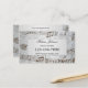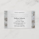 Business card with a music theme featuring an elegant grey damask design with stylized métallc musical notes. On the back is space for appointments (optional).