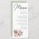 Cette carte de menu à l'aquarelle florale rose et mauve romantique est le design parfait pour compléter un mariage élégant et sophistiqué. Avec de superbes fleurs à l'aquarelle de rose vintage, dans des teintes de rose, de pêche, de sauge, d'olive et de sarcelle, elle est sûre de compléter le look que vous désirez.