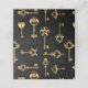 Seamless pattern of antique, gold and silhouette keys on black background.