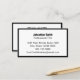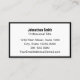 Ce carte de visite minimaliste est à double face. Les deux côtés ont une élégante bordure noire. Le premier côté contient des lignes de texte d'affichage pour votre nom, adresse, numéro de téléphone et adresse e-mail. La deuxième partie a une image d'affichage que vous pouvez remplacer par votre code QR ou une autre image. Tout le texte peut être modifié ou supprimé. Le texte est noir.