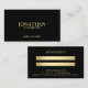 Un design professionnel moderne en noir et or, avec des informations d'affaires dans un style de police professionnel sur le côté avant de la conception, avec des détails de rendez-vous et des informations de contact sur le côté arrière. Idéal pour un maquilleur, designer, styliste, consultant, agent immobilier et de nombreuses autres professions. Remarque : Les détails du papier sont simulés dans l'illustration. Il n'y aura pas de métal sur ce produit.