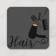Cette carte est conçue pour aider les coiffeurs à planifier facilement et rapidement les rendez-vous avec leurs clients. Il présente un design moderne et élégant, avec des tons gris et noirs. La carte comprend également de l'espace pour le nom du client, la date de rendez-vous et les coordonnées du contact.