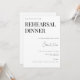 Ces cartes de repas de répétition élégantes et minimalistes présentent une typographie de script moderne et un texte clair pour un design blanc simple et stylé que vous aimerez. Ajoutez un texte personnalisé pour fournir toute information supplémentaire nécessaire à vos invités. N'hésitez pas à m'envoyer un message pour toute question liée au design - je serai ravi de vous aider !
