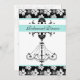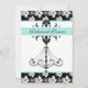Répétition de cartes de dîner Aqua Chandelier avec un lustre blanc et des imprimés damassés sur un arrière - plan noir et un cadre aqua. Ils sont faciles à customiser avec tous vos détails de repas de répétition et nous avons aussi les invitations de mariage assorties, les invitations de mariage et de douche du couple, les cartes RSVP, les notes de remerciement, les fiches d'information, les autocollants, l'affranchissement, et beaucoup plus!