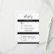 Carte de réponse personnalisée pour les invités non seulement à répondre, mais aussi à choisir des choix de repas et de liste d'allergies, pour chaque invité. Disponible sur demande. Une partie de la collection de mariages noirs et blancs.