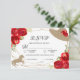Carte de RSVP pour une fête de mariage sur le thème du Kentucky Derby. Roses rouges et or.