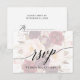 Cette élégante carte de réponse avec calligraphie et motif floral décoloré est parfaite pour un mariage d'automne. Le design présente une typographie romantique et fantaisiste superposée à un magnifique bouquet de fleurs rose blush, marsala et bordeaux. Créez votre liste d'invités de mariage et votre liste de chansons de piste de danse en même temps ! Cette carte de réponse de mariage demande commodément aux invités s'ils pourront assister à votre mariage, et quelle chanson les fera danser.