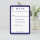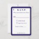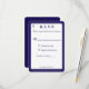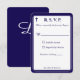 La conception de la face avant présente le format traditionnel pour une carte de réponse de mariage affichée dans une police bleu marine sur fond blanc. L'image d'une croix est affichée dans le coin supérieur. L'ensemble de la conception est encadré par une bordure élégante bleu marine et blanche.