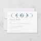 Complétez votre suite de mariage céleste avec notre carte de réponse de mariage de la collection Bleu Céleste Phases de Lune Minimaliste. Ce design présente une esthétique simple, minimaliste et nette, avec un fond blanc propre qui permet aux éléments célestes de ressortir. Centrées en haut de la carte, les cinq phases de la lune sont représentées dans une belle couleur bleu clair, ajoutant une touche de beauté céleste au design.