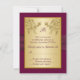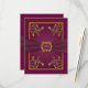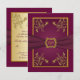 Cette carte de réponse damas vin de prune avec motif floral doré comporte un ruban FAUX et un médaillon doré qui correspond à l'invitation de mariage présentée ci-dessous.