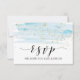 Cette carte de réponse RSVP de choix de menu bleu et or aquarelle est parfaite pour un mariage élégant. Le design luxueux présente une texture aquarelle bleu clair avec une touche de magnifique paillette dorée fausse et une police de caractères à calligraphie moderne. Cette carte de réponse de mariage demande commodément aux invités quel repas ils aimeraient à votre réception.