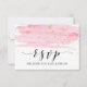 Cette carte de réponse RSVP avec choix de menu à l'aquarelle rose et or est parfaite pour un mariage au thème moderne romantique et doux. Le design féminin luxueux présente une texture d'aquarelle rose clair avec une touche de poussière de faux paillettes dorées et une police de caractères calligraphiée élégante. Cette carte de réponse de mariage demande commodément aux invités quel repas ils aimeraient à votre réception.