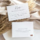 Design simple avec calligraphie et polices modernes. Il y a une demande de chanson en bas pour faire danser vos invités ! Le verso comporte un texte pour répondre en ligne sur le site web du mariage. Il y a deux illustrations de citrouilles en orange en bas pour la saison automnale.